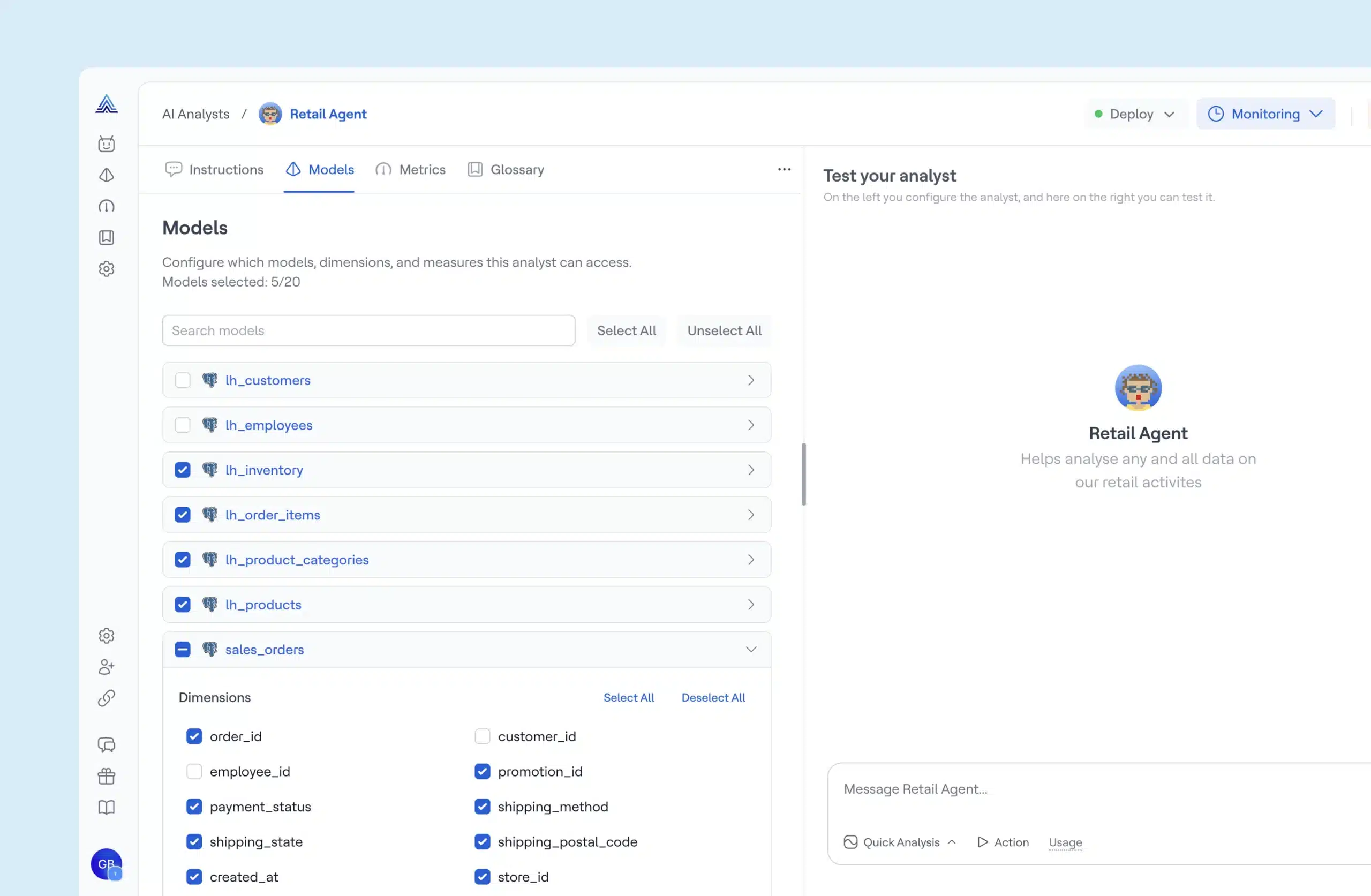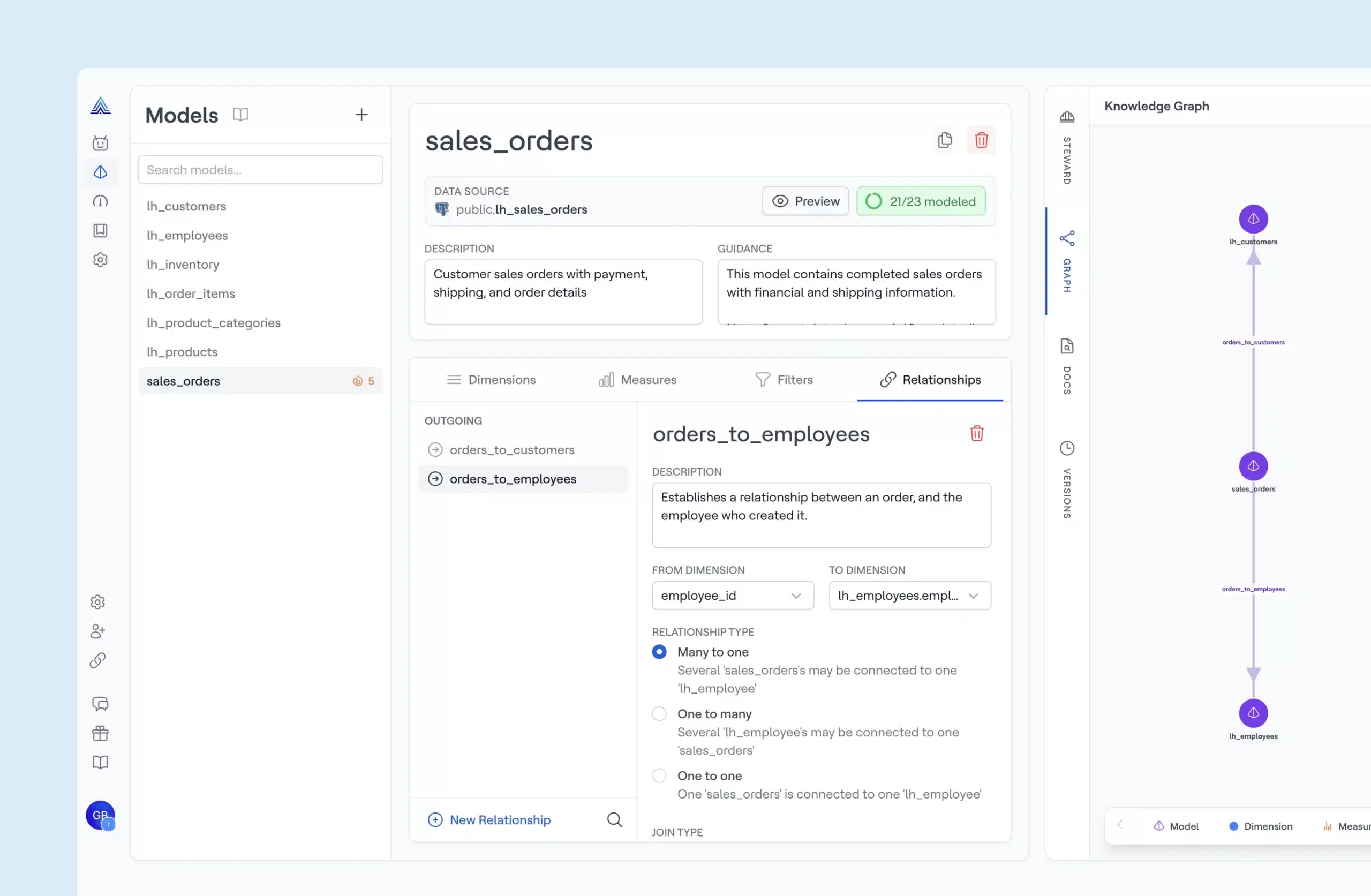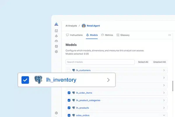 AI Analyst runs on a semantic layer that reflects how your business actually operates. Models, metrics, glossary terms, and relationships are generated and maintained with the Steward Agent, ensuring business logic is defined before questions are asked.