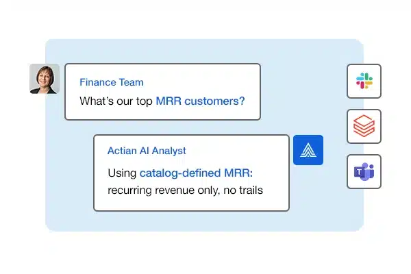 Users ask questions in conversational language through Slack, Teams, or the Actian AI Analyst app. Follow-up questions retain context, allowing analysis to evolve naturally.