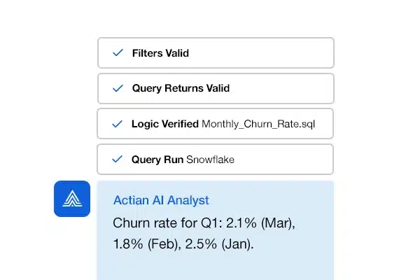 Ask business questions. Get trusted answers. Actian AI Analyst delivers conversational analytics built on deterministic semantics, enabling business users to explore data confidently while maintaining enterprise governance.