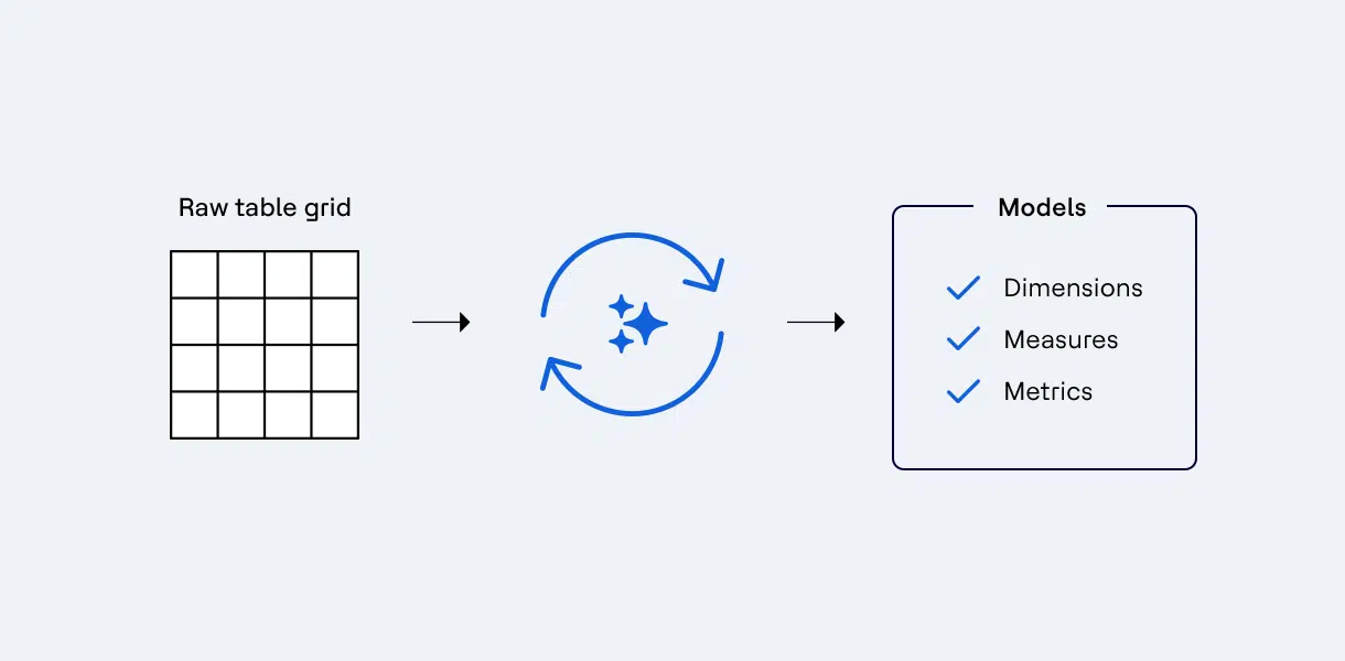 The Steward Agent generates and validates the semantic foundation from existing tables and documentation. Move from connection to production-ready analytics in hours or days.